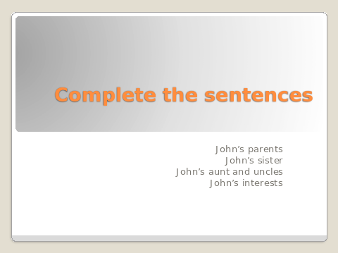 Учащиеся: Рассказ будет о жизни Джона, где живет он и его родственники,(This story will be about John, where he and his relatives live).