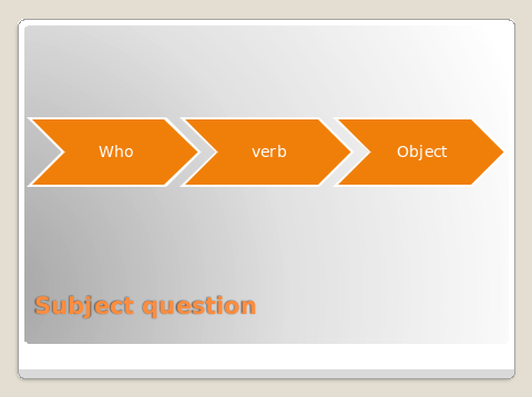 Учитель:Вопрос к подлежащему начинается с вопросительного слова «кто»,далее идет сказуемое ,дополнение и остальные члены предложения.Теперь,ребята,давайте посмотрим на следующий слайд.(The Subject question begins with who, followed by the verb, object and all the other members of the verb.Now,let’s have a look at the screen)