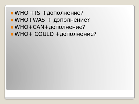 2 Сформулируйте правило построения вопросов к подлежащему с вспомогательными и модальными глаголами в настоящем и прошедшем простом времени. (Make up the rule for constructing who-questions in present and past simple, with the use of auxiliary and modal verbs).