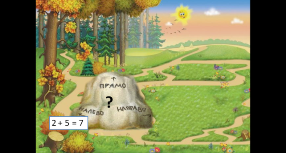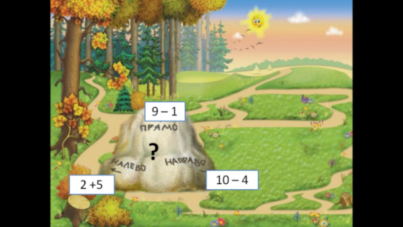 - Рассмотрите внимательно камень, что на нем написано? Что значит прямо? Направо? Налево? Давайте проверим.