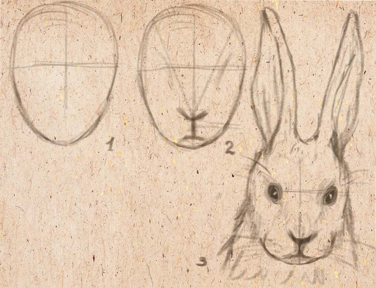 Давайте сделаем несколько набросков и потренируемся рисовать портрет зайца. Это совсем несложно, главное вытянуть морду и прикрепить длинные уши, если нам достаточно простого рисунка. Если нужно что-то боле серьезное, нужно этот примитив детализировать.