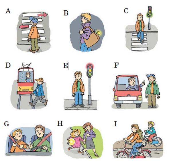 I want you to have a walk along Minsk. But before we have to remember safety rules. Read and match the rules to the pictures.