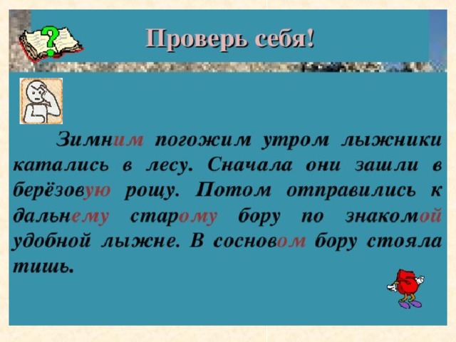 Понаблюдайте, что происходит с прилагательным, когда оно «присоединяется » к именам существительным .