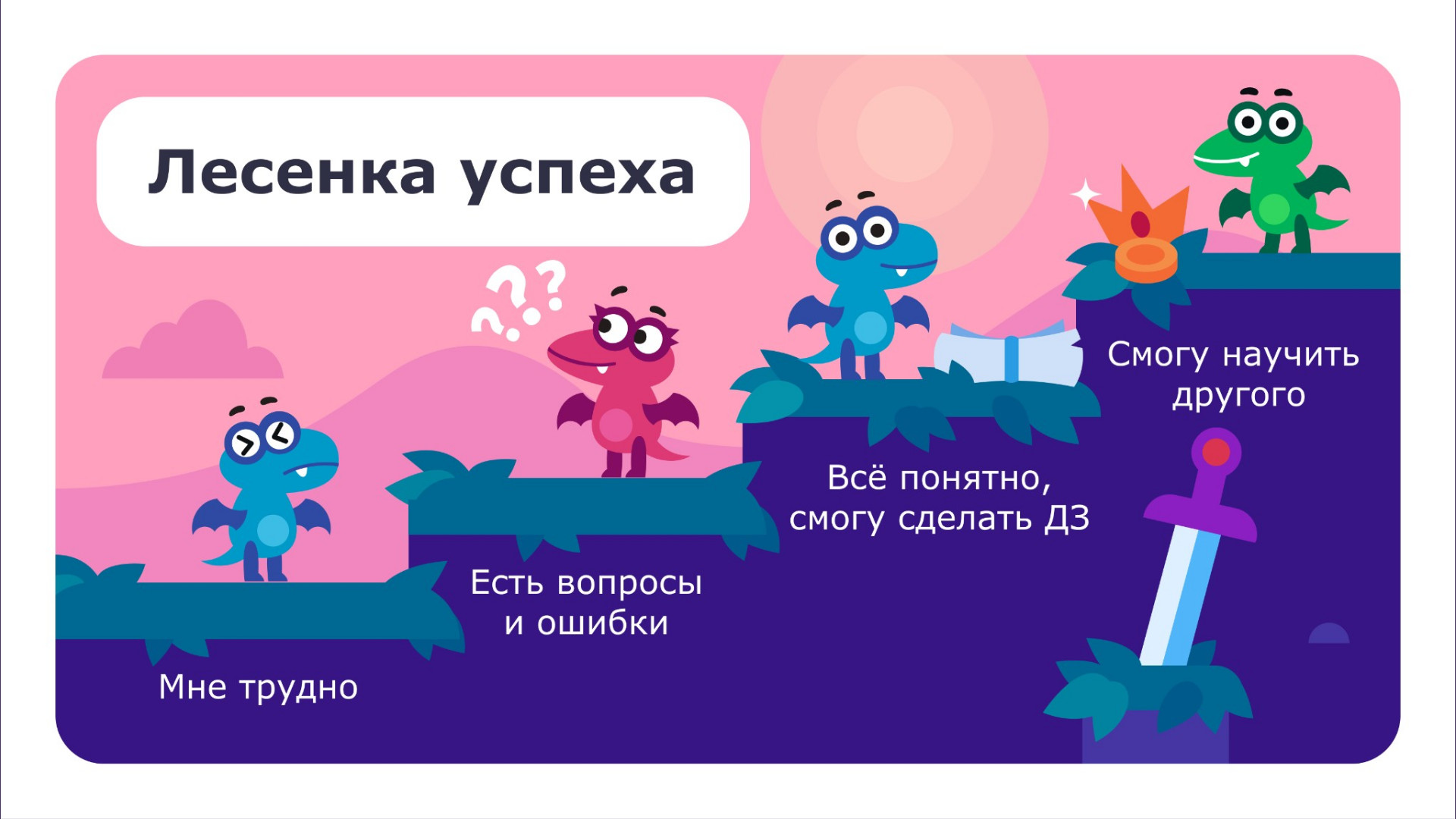 | Рефлексия. Оценка деятельности — Оцените свою работу на уроке. На какой ступеньке лестницы вы находитесь? Поднимите руки те, кто на первой ступени. Кто на второй? На третьей ступени? Четвёртой? — Обсудите в парах: почему вы оказались на этой ступени? Почему так получилось, чего вы не знаете? — Что же нужно сделать, чтобы количество ошибок уменьшилось, а вы были на вершине лесенки? | |