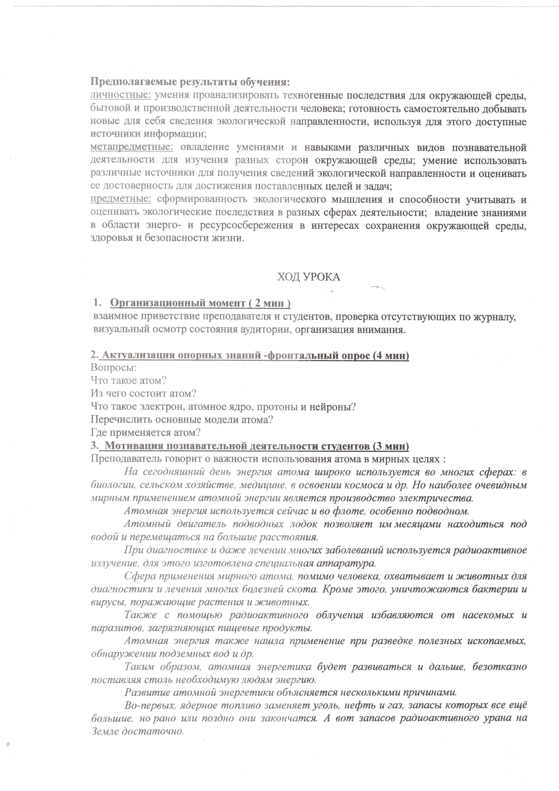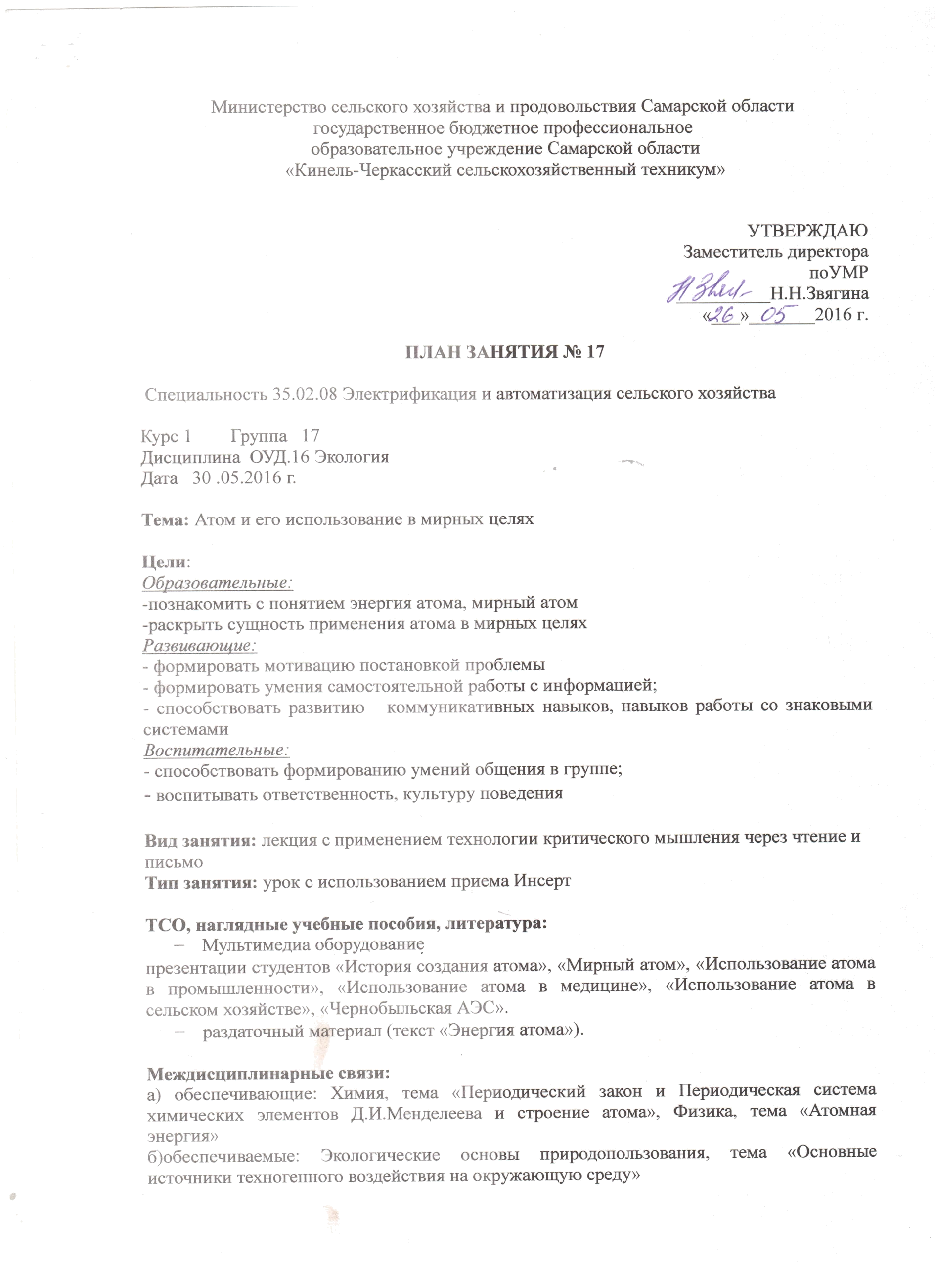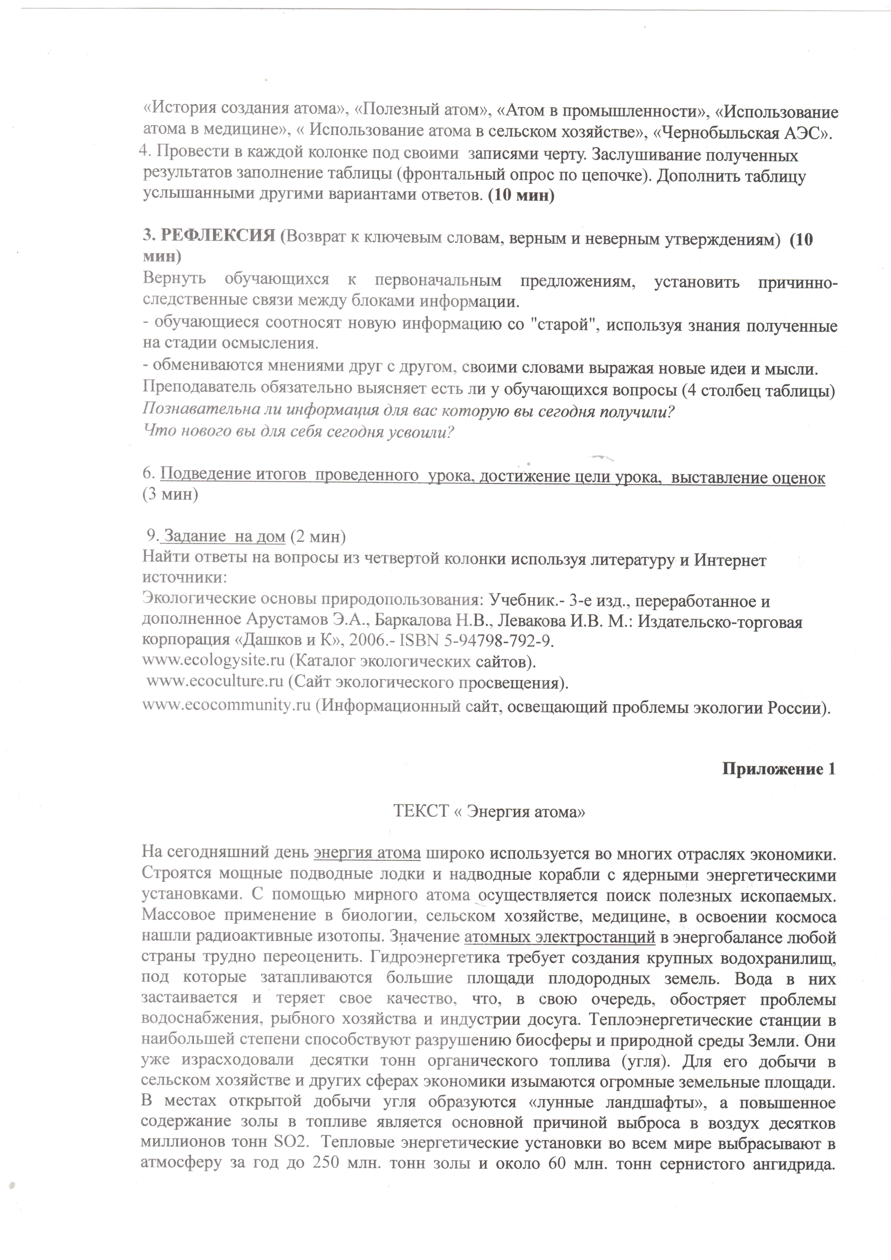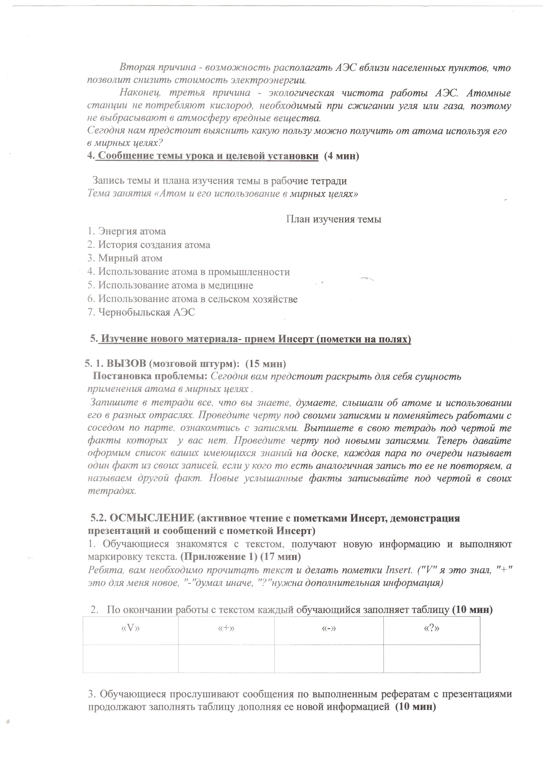 Лекция с применением технологгии критического мышления через чтение и письмо. Урок с использованием приема Инсерт по теме "Атом и его использование в мирных целях"