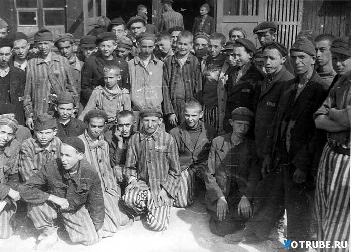 Группа детей из концлагеря Освенцим. Польша. 02.1945г.