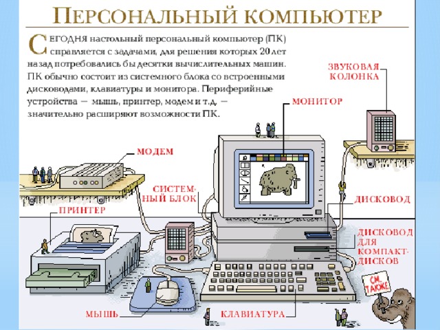 Далее рассматриваем каждый из устройств компьютера в отдельности (можно заранее подготовить несколько учащихся к выступлению с рефератами).
