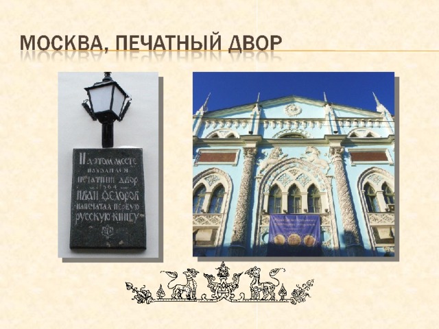 - Место и время создания первой печатной книги на Руси. Первый печатный двор.