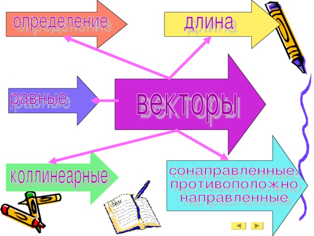 Ненулевые векторы называются коллинеарными, если они лежат либо на одной прямой, либо на параллельных прямых; нулевой вектор является коллинеарным любому вектору.