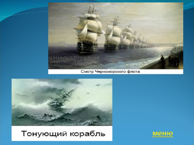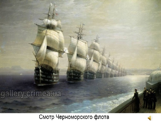Пятидесятые годы связаны с Крымской войной 1853 — 1856 годов. Как только до Айвазовского дошла молва о Синопской битве, он сейчас же поехал в Севастополь, расспросил участников сражения обо всех обстоятельствах дела. Вскоре в Севастополе были выставлены две картины Айвазовского, изображающие Синопский бой ночью и днем. Адмирал Нахимов, высоко оценив труд Айвазовского, особенно ночной бой, сказал: “Картина чрезвычайно верно сделана ”.