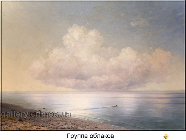 В 1899 году он написал небольшую картину, прекрасную по ясности и свежести колорита, построенного на сочетании голубовато-зеленого цвета воды и розового в облаках — “Штиль у Крымских берегов”.