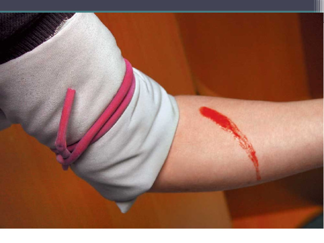 из раны струится темная по цвету венозная кровь . Сгустки крови, возникающие при повреждении, могут смываться током крови, поэтому возможна кровопотеря