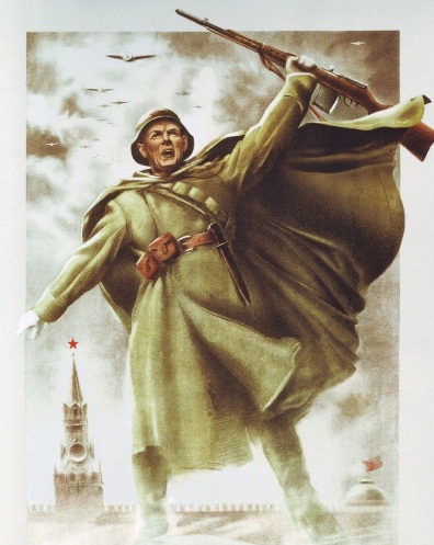 Воспитатель. В течение октября шли упорные бои, наши части даже в окружении продолжали сопротивление, сдерживая крупные силы врага и тормозя его продвижение. Но фашистам все же удалось перейти в наступление и подойти вплотную к столице. Уже в середине октября они получили приказ: «Завтракать в Волоколамске, а ужинать в Москве». Но этот фашистский ужин в древней столице России так и не состоялся. В эти решающие дни основным лозунгом для нашего народа стал призыв: «Все на защиту родной Москвы!» На защиту столицы поднялся весь народ. Сотни тысяч москвичей строили укрепления, уходили в ополчение, тушили «зажигалки» - 1610 фугасных и 110 тысяч зажигательных бомб было сброшено на Москву! Со всех концов страны шли в Москву эшелоны с продовольствием, подкреплением, техникой. К концу октября - началу ноября противник стал выдыхаться. Его наступление на Москву было остановлено железной стойкостью и волей наших воинов. А 7 ноября 1941 г. в Москве, как всегда, состоялся праздничный парад. Прямо с парада воинские части уходили на фронт.