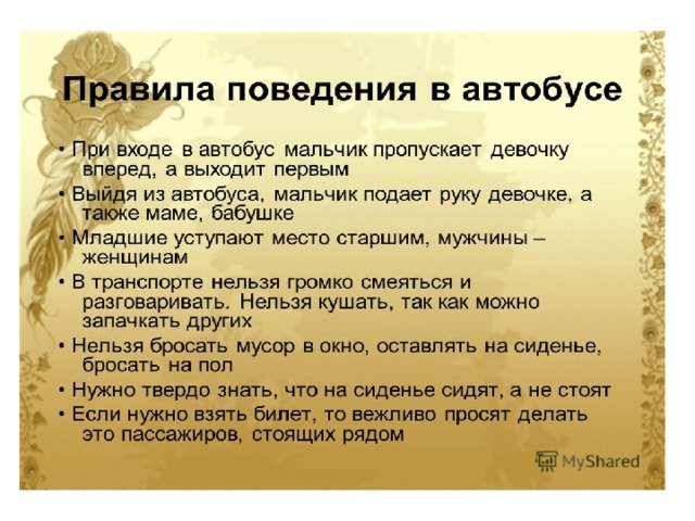 • Проходя к своему месту, иди вдоль рядов кресел лицом к сидящим зрителям. Если ты пришёл с девочкой, пропусти её вперёд.