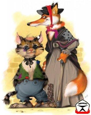 5.Лиса Алиса и кот Базилио (у одного глаза завязаны, другой прыгает на одной ноге).