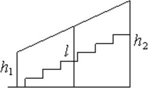 Перила лестницы дачного дома для надёжности укреплены посередине вертикальным столбом. Найдите высоту 𝑙 этого столба, если наименьшая высота ℎ1 перил равна 0,7 м, а наибольшая ℎ2 равна 1,5 м. Ответ дайте в метрах.