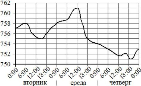 Определите по рисунку значение атмосферного давления в четверг в 6:00. Ответ дайте в миллиметрах ртутного столба.