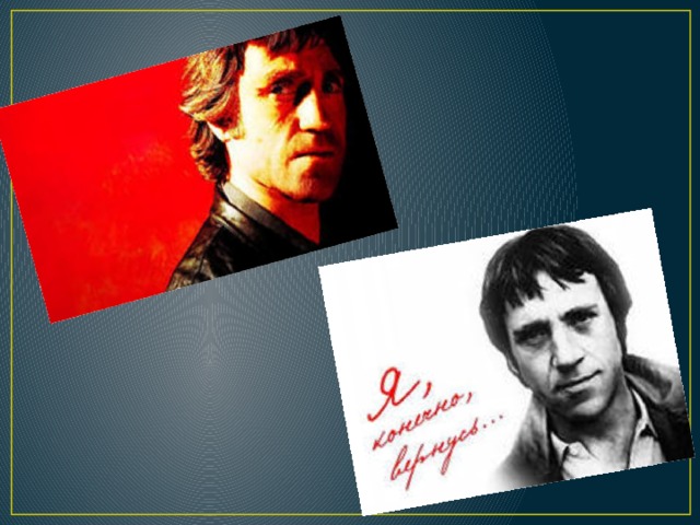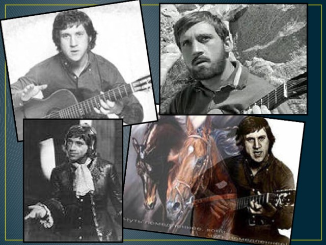 гитару. Авторской песне обязаны мы появлением двух выдающихся мастеров этого жанра, ставших властителями душ всех мыслящих и остро чувствующих людей разных поколений, Булата Окуджавы и Владимира Высоцкого. В лирической песне они заговорили так, как никто до них не говорил, - о судьбах народных и человеческих, о войне, о страданиях людей, о смысле жизни, о добре, которое преследует, и о зле, которое торжествует. Их песни не были похожи, как и они сами. Но было в их разных песнях и нечто общее: пронзительность личного чувства, богатство личного опыта. Высоцкий как-то признался, что начал писать песни после того, как услышал Окуджаву.