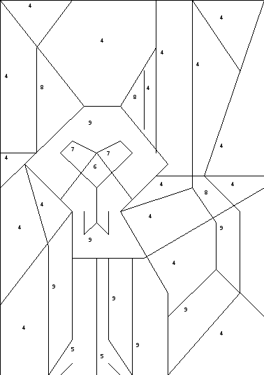 Второе задание. Каждая команда получает альбомный лист бумаги и цветные карандаши (шести цветов – по количеству игроков каждой команды), на которых записаны номера от 4 до 9 в двоичной системе счисления. Надо раскрасить рисунок соответствующими цветами.