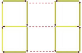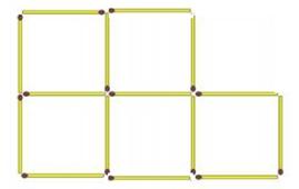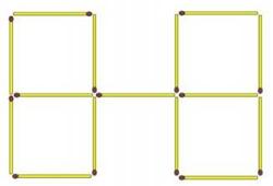 Задание: Сложи 6 одинаковых квадратов из 17 спичек так, как показано на рисунке. Убери 3 спички так, чтобы получилось 4 равных квадратов.