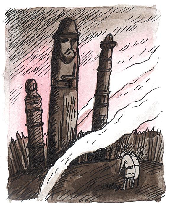 На пути торгового каравана было ещё одно место, где ладьи приходилось тащить волоком. В этом месте Днепр был труднопроходимым для водного транспорта. Здесь-то и подстерегали купцов кочевники, чтобы отобрать товары. Чтобы отбивать атаки кочевых племён, торговцы брали с собой охрану.