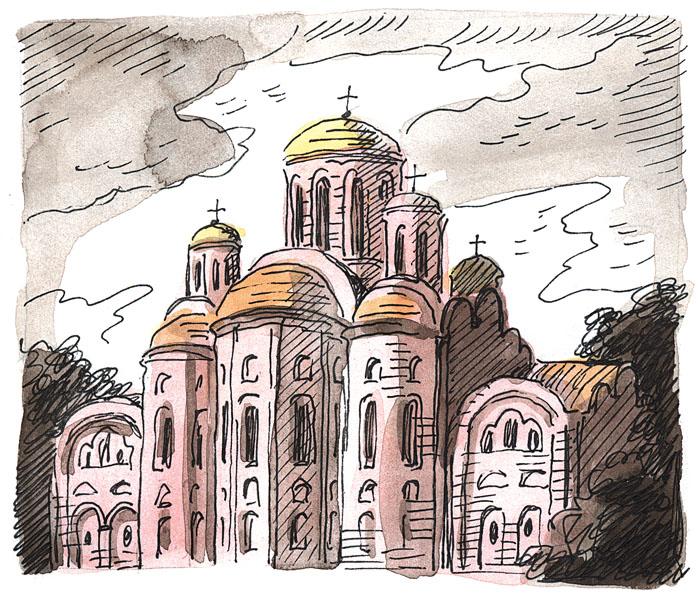 После Крещения в Киеве началось строительство нескольких небольших храмов. Позднее появилась и величественная Десятинная церковь.