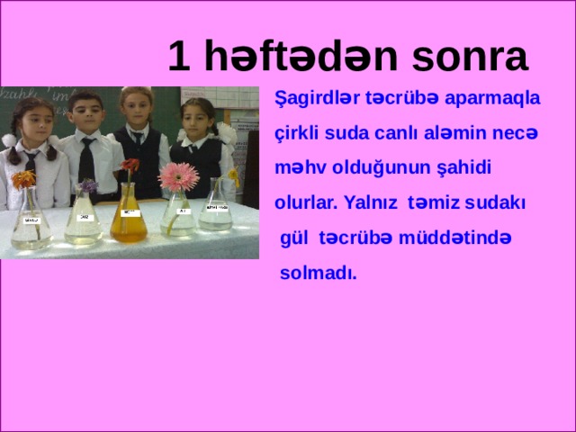 Kolbaların beşini də günəş şüası düşən pəncərəyə qoyuruq, 1 həftə ərzində güllərin vəziyyətini müşahidə edirik.
