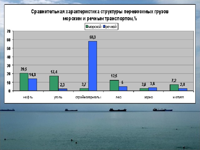 Россия занимает второе место в мире по протяженности внутренних водных путей. Их общая протяженность 115 тыс. км. Самым важным для речного судоходства является Волго-Камский бассейн на него приходится более 40% грузооборота всего речного транспорта. Еще одним важным судоходным районом в европейской части России является бассейн Северной Двины. В Сибири основные судоходные пути располагаются на реках Обь, Енисей, Лена и их притоках. Обь судоходна на протяжении 3 600 км, Енисей – около 3 300 км, Лена – 4 000 км. Эти водные артерии играют важную роль в обеспечении многих районов Сибири, так как сеть железных дорог в этом регионе слабо развита.