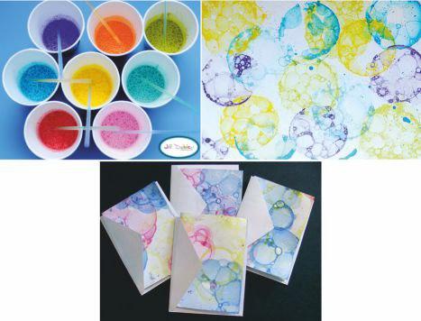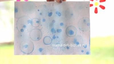 Тонирование фона будущей открытки с помощью цветных мыльных пузырей.