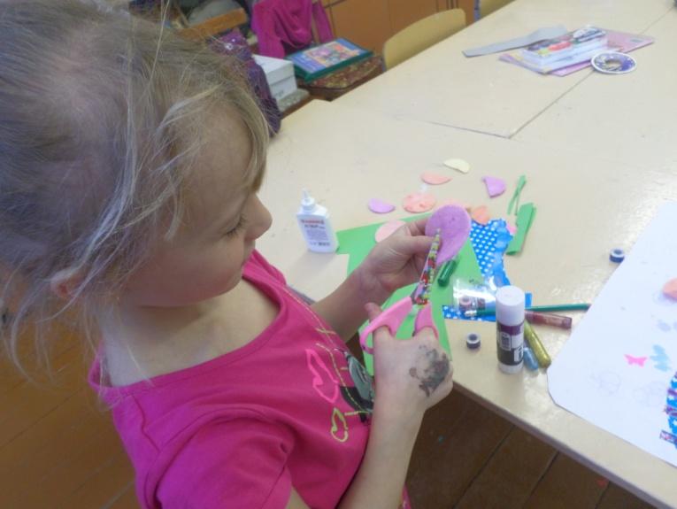 Украшаем готовую работу блёстками, бабочками и т.д..
