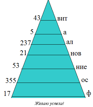 Полученные ответы в задании №4 Рабочего листа найдите на левой стороне треугольника и запишите соответствующие ему букву или слог с правой стороны треугольника.