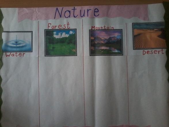 Then teacher put new words on the blackboard associated with nature: