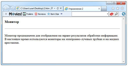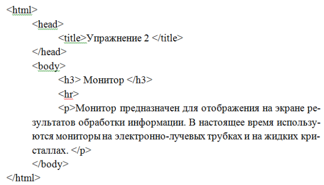 Сохраните его в своей папке под именем Упражнение2.HTML.
