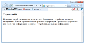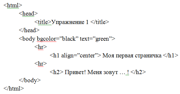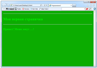 Сохраните его в своей папке под именем Упражнение1.HTML.