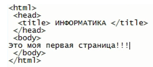 Между открывающимся и закрывающимся тегами мы пишем текст, который будет размещаться на нашей веб-странице: «Это моя первая web-страница!!!»