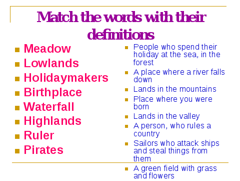 Match the definitions of the following words:(slides)