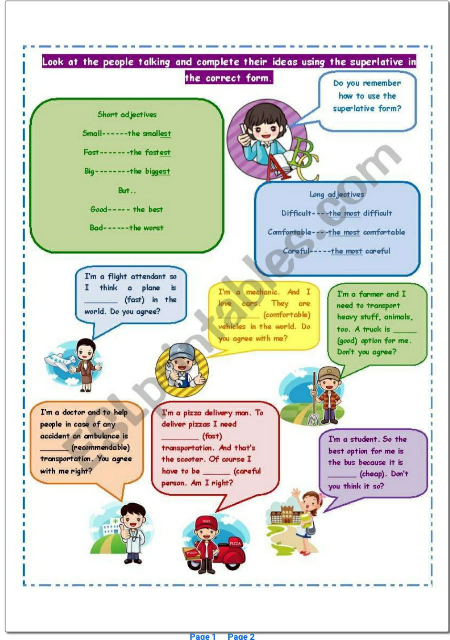 In this Chain Drill the pupils practise the superlatives. Tell them they can use the adjectives in the cloud when they talk about the transport in activity 2.