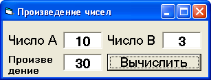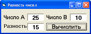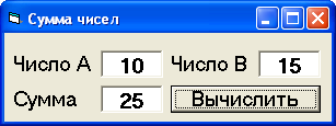 Внимательно рассмотрите форму (см. рис.). К этой форме составьте код, такой чтобы при нажатии на кнопку «Вычислить», данные считывались из полей «Число А» и «Число В», вычислялась их сумма, результат выводился в поле «Сумма».