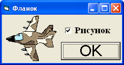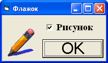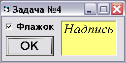 Внимательно рассмотрите форму (см. рис.). Вам необходимо написать код к этой форме, так чтобы надпись исчезала с формы при нажатии кнопки «ОК», только при условии, что флажок установлен.