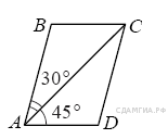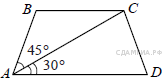 1. Найдите больший угол равнобедренной трапеции ABCD, если диагональ AC образует с основанием AD и боковой стороной ABуглы, равные 30° и 45° соответственно.