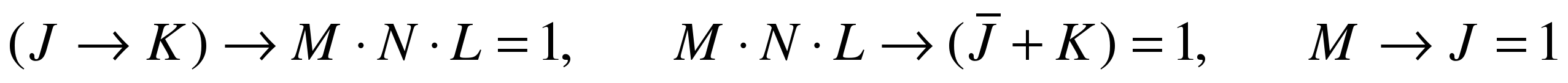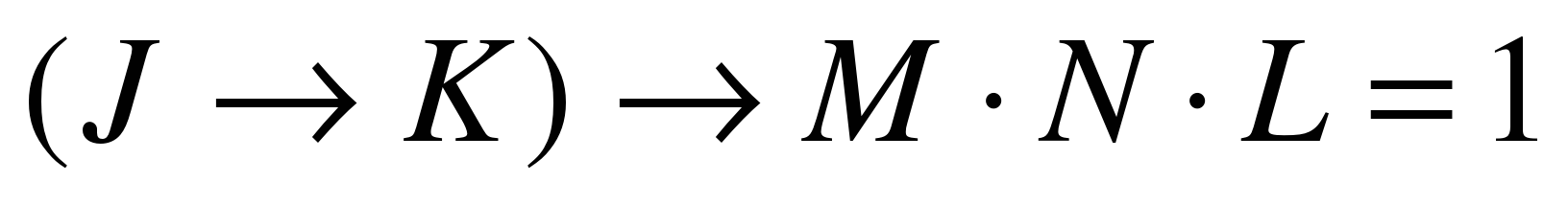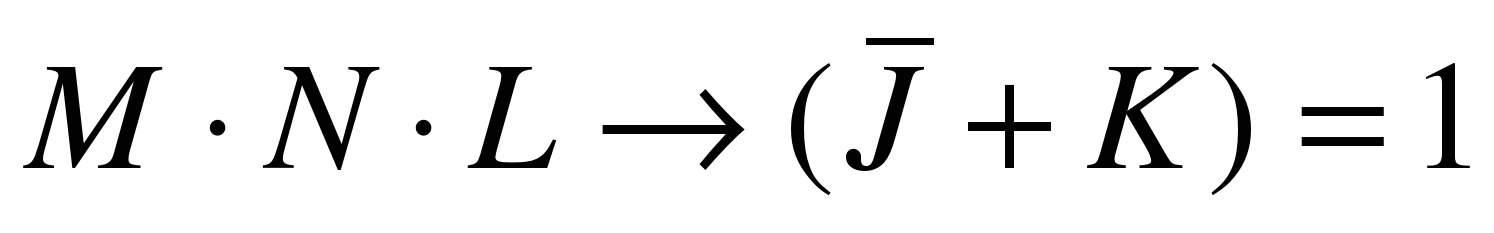 ((J → K) → (M Λ N Λ L)) Λ ((M Λ N Λ L) → (¬J V K)) Λ (M → J) = 1