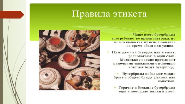 5. При подаче к столу бутерброды следует укладывать на блюде: