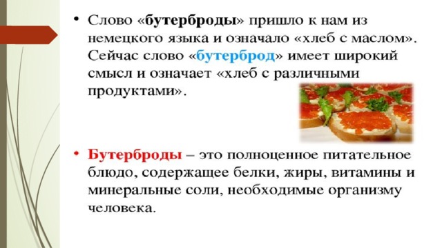 1. В переводе с немецкого языка слово «бутерброд» означает: