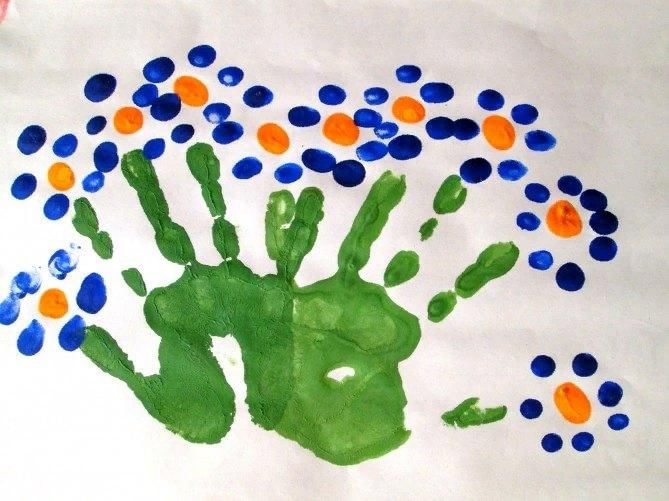 Индивидуальная работа: наносить краску на ладошку, аккуратно прижимать к бумаге, если это необходимо. обмакивать пальчик в краску, направлять его руку, если это необходимо, напоминать о том, что нужно рисовать только кончиком пальчика..: учить рисовать не только округлый отпечаток ладони, но и вытянутый, с наклоном. учить рисовать ладошкой несколько лепестков, создавая более сложную форму учить рисовать изогнутый или волнистый стебель кисточкой или пальчиком.