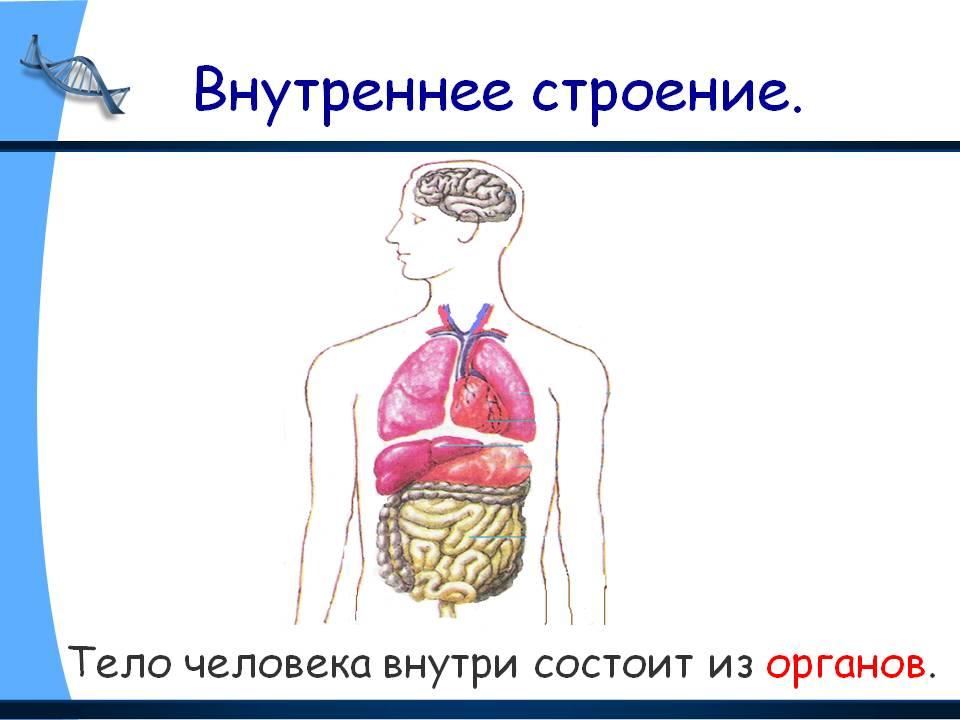 голова, шея, головной мозг, лёгкие, сердце, туловище, руки, желудок, ноги, кишечник, грудь, спина