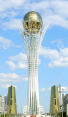 «Байтерек»- қазақ халқының қайта өрлеуі мен түлеуінің, мемлекеттігің,биік пен тереңдіктің кеңдіктің белгісі, дархандақтың көрінісі. Байтерек биіктігі 105 мметал құрамасынан жасалған,салмағы 1000 т.Шар биіктігінің диаметрі 22 м, салмағы 300т Н.Ә.Назарбаев эскизі негізінде дүниеге келді.Ол бейбіт өиір мен келісімге ұмтылған барлық Қазақстандықтардың мұратын білдіреді.Бәйтерек нысаны 3 бөліктен тұрады:Жер асты бөлігі-ұлттың тамыр жаюы,ал одан кейінгілері өркендеу кезеңдерінің нышанын білдіреді.Ең жоғарғы жағында «Аялы алақан»композициясы орын алған.Осынау ғаламат шардың панорамалық залынан Астананың кешегі,бүгінгі сәулетін тамашалауға болады.