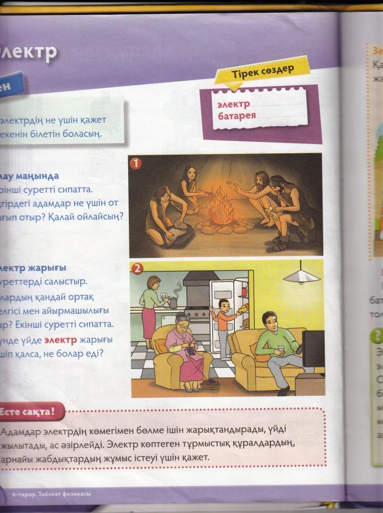 | Күтілетін нәтижесі | Барлық оқушылыр: Электр жарық көзі екенін біледі. Оқушылардың басым бөлігі: Электр қуаты не үшін қажет екенін біледі. Кейбір оқушылыр: Электр қуатының маңызын түсінеді. | ||||||||||||||||||||||||||