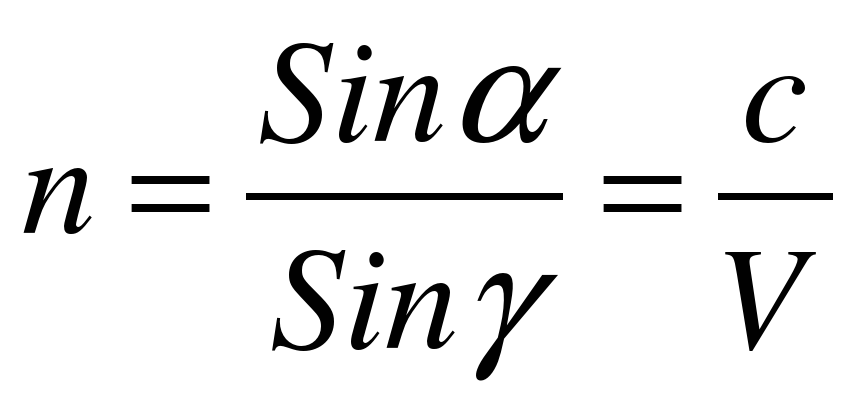 формуласымен де анықталады. С- жарықтың вакумдағы жылдамдығы, v –ортадағы жылдамдығы, Онда екі формуланы біріктіріп былай жазуға болады.