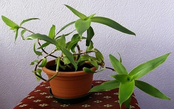 Это довольно крупное растение, напоминающее по виду молодую кукурузу. Цветки его мелкие, душистые. Запах приятный. Он хорошо выращивается и приживается в комнатных условиях. Листья довольно крупные. Сверху они бархатисто- темно-зеленые, а снизу – фиолетово-зеленые.