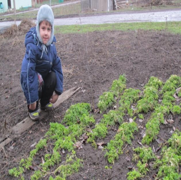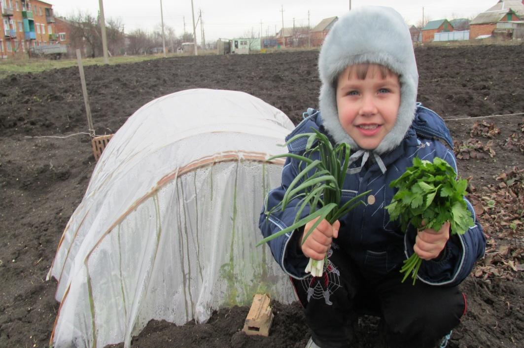 А еще у нас есть парник, где выращиваем зелень: петрушку, укроп, лук.